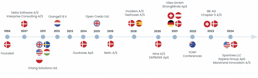 Trifork Group was founded in Denmark in 1996. Between 2007 and 2014, the Group was listed on Nasdaq Copenhagen. At the beginning of 2014, the headquarters were moved to Switzerland, and Trifork Group AG was established as the holding company of the Group. As part of this reorganization, Trifork was delisted from Nasdaq Copenhagen. The company increased its international focus in these years and partnered with the software-focused private equity fund GRO Capital in 2015. GRO Capital exited its investment through an IPO on Nasdaq Copenhagen in May 2021. Today, the founder and CEO, Jørn Larsen, remains the largest shareholder with approximately 19% of the shares.